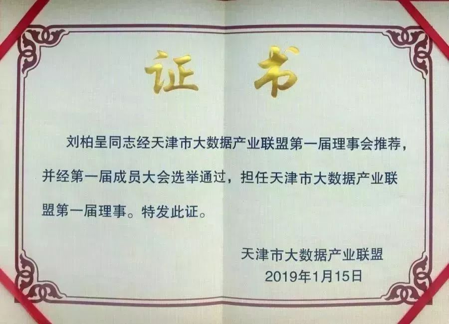 今年会jinnianhui物联董事长刘柏呈担任天津市大数据产业联盟第一届理事